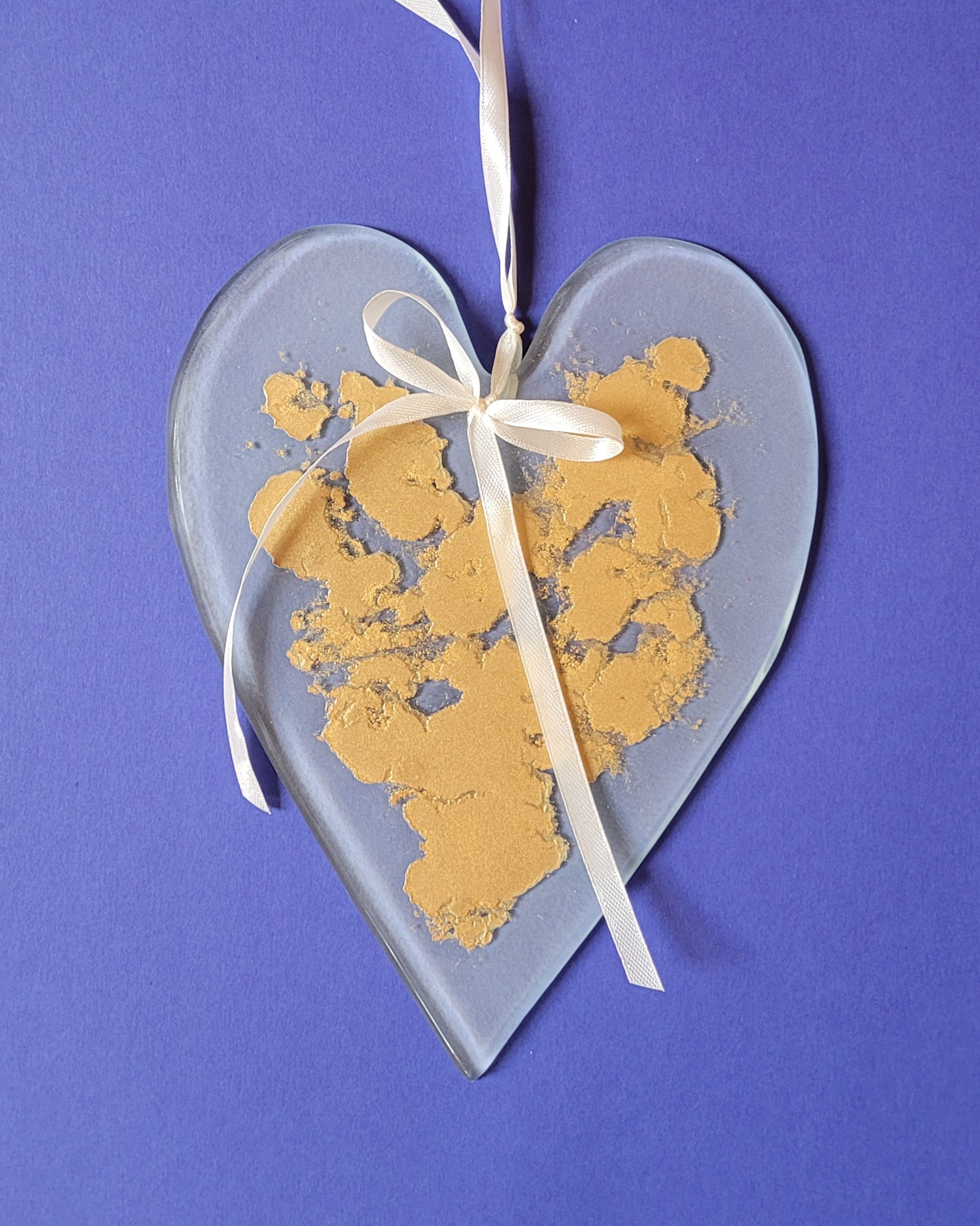 Dekorácie sú navrhnuté a vyrobené ručne v mojom ateliéri. Sklo je maľované a spekané v peci, preto je farba miestami iná a ovplyvnená samotným výpalom čo im dáva jedinečný výraz a drobné odlišnosti.